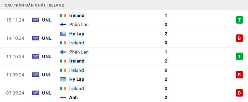 Thống kê cho thấy Ailen đã thua 4 trong 6 trận gần nhất và không ghi bàn trong cả 4 trận thua đó. Những thất bại gần đây trước Pháp, Hà Lan và Hy Lạp cho thấy đội bóng này còn nhiều hạn chế, đặc biệt là trong khâu tấn công. Họ đã có những chiến thắng trước Phần Lan, nhưng việc không thể ghi bàn trong các trận đấu với những đối thủ mạnh khiến họ gặp khó khăn trong việc tìm kiếm điểm số.