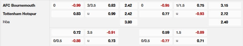 Tỷ lệ kèo Bournemouth vs Tottenham