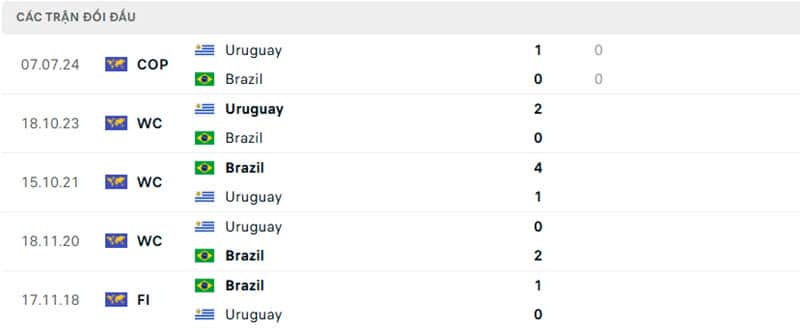 Lịch sử đối đầu giữa hai đội đang nghiêng về phía Uruguay, khi họ đã thắng Brazil trong cả hai trận đấu gần đây, bao gồm một trận thắng ở tứ kết Copa America 2024. Trong trận đấu lượt đi tại vòng loại này, Uruguay đã đánh bại Brazil với tỷ số 2-0, điều này càng gia tăng áp lực lên Selecao trong trận tái đấu sắp tới. Brazil cần phải vượt qua được áp lực tâm lý này để có thể phục thù và giành lại vị trí cao hơn trên bảng xếp hạng.