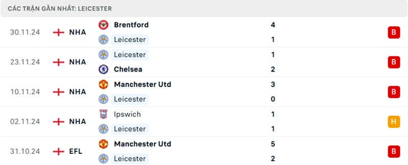 Bước vào trận đấu này, Leicester City đang phải đối mặt với một tình hình khó khăn. Với chỉ một điểm có được trong năm trận đấu gần đây nhất tại Premier League, đội bóng này đã rơi vào khủng hoảng. Trận thua 4-1 trước Brentford và thất bại 3-0 trước Manchester United trước đó đã khiến Leicester phải đối mặt với những chỉ trích nặng nề. Hàng phòng ngự của họ đã trở thành vấn đề lớn, với những màn trình diễn kém cỏi và tỷ lệ lọt lưới cao.