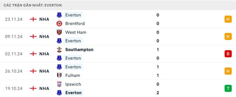 Everton hiện đang đứng ở vị trí 15 trên bảng xếp hạng và đang phải đối mặt với áp lực lớn từ người hâm mộ. HLV Sean Dyche đang cố gắng tìm kiếm những điểm số quan trọng để đảm bảo sự an toàn cho đội bóng, nhưng phong độ của Everton trong thời gian gần đây không thực sự ấn tượng. Họ chỉ có 1 chiến thắng trong 9 trận gần nhất, với 3 trận hòa và 5 trận thua.