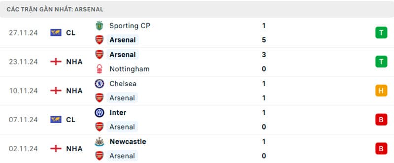 Arsenal, sau một thời gian gặp khó khăn, hiện đang có dấu hiệu hồi phục mạnh mẽ. Họ vừa có chiến thắng ấn tượng 5-1 trước Sporting Lisbon tại Europa League, giúp đội bóng lấy lại tinh thần và tự tin. Hiện tại, Arsenal đứng thứ 4 trên bảng xếp hạng Premier League, nhưng vẫn kém đội đầu bảng Liverpool 9 điểm. Họ cần duy trì phong độ tốt để tiếp tục đuổi theo ngôi vị cao nhất.